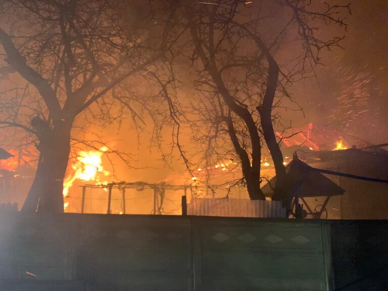 La sosirea forțelor de intervenție, incendiul se manifesta generalizat la acoperișul a două locuințe (aflate la o distanță de aproximativ 2 m una de cealaltă) și la mai multe anexe gospodărești.