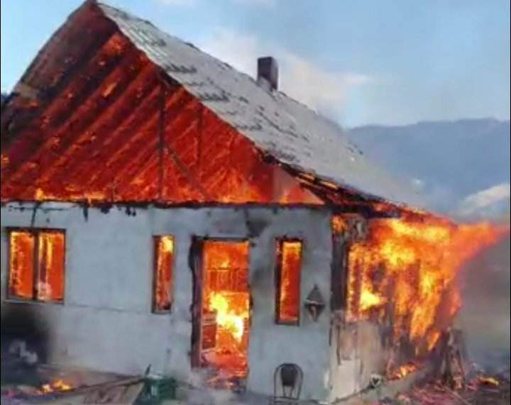 Incendiul se manifesta cu flacără deschisă, generalizat, atât la interiorul cât și la acoperișul unei case.
