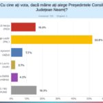 Pentru funcția de președinte al Consiliul Județean, George Lazăr (PNL) rămâne principalul favorit, și el fiind în creștere, cu 52,8% din opțiunile celor intervievați, în vreme ce Vasilică Harpa (PSD) urmează trendul descendent al colegului său Lucian Micu și mai pierde două procente, fiind creditat doar cu 16%, urmat de Maria Apostol (Alianța Dreapta Unită), cu 7,7% și Elena Didilă (SOS România) cu 4,2%.