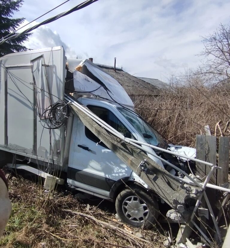 O autoutilitară în care se afla doar conducătorul auto a părăsit partea carosabilă și a intrat într-un stâlp de electricitate și un gard.