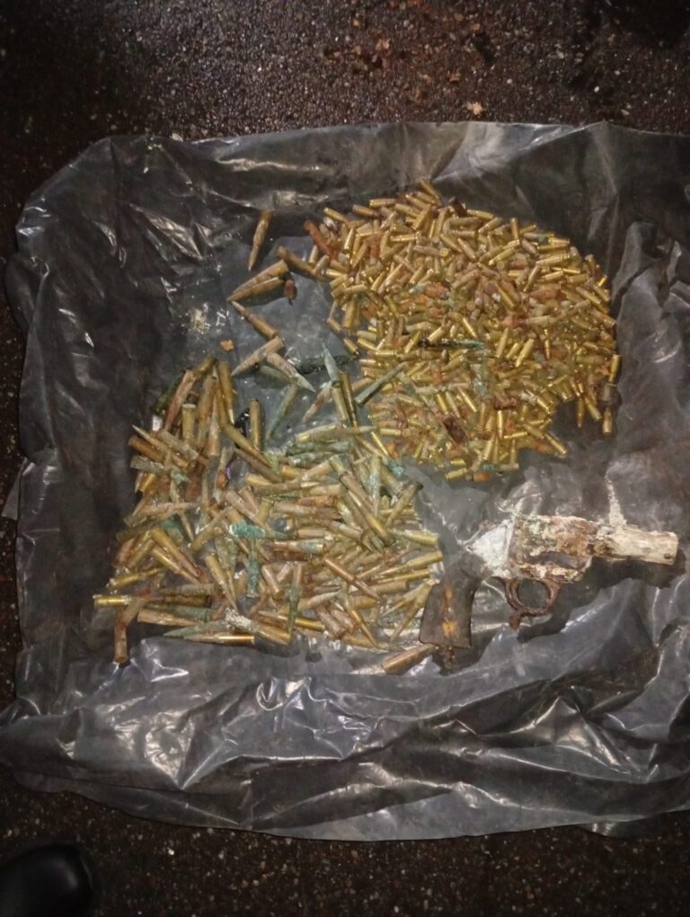 Ajunși la locul indicat, pirotehnicienii au identificat 680 cartușe pentru pistol de calibru 7,63 mm și 167 cartușe de calibru 7,62 mm. După cercetarea zonei, executată cu ajutorul echipamentelor specifice din dotarea autospecialei, a mai fost descoperit un pistol de semnalizare într-o stare avansată de degradare.