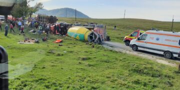 Prin apel la 112, in jurul 13:04, am fost înștiințati despre producerea unui accident rutier în urma căruia o cisternă pentru transport ciment s-a răsturnat...